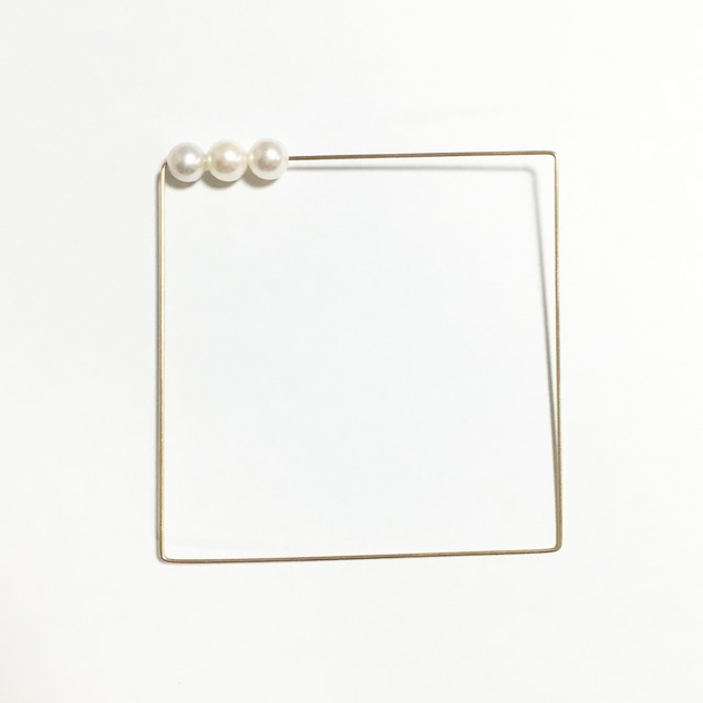 アコヤ真珠を使ったスクエアタイプのバングルです。 ちょっと変わった四角いバングル。 K10の線材とアコヤ真珠の輝きが腕を華奢に美しく見せてくれます。エレガントで上品なのにどこか個性的なのがこのラインの特徴です。 金属部分・・・K10YG あこや真珠・・・6mm×3PC 1辺・・・60mm
